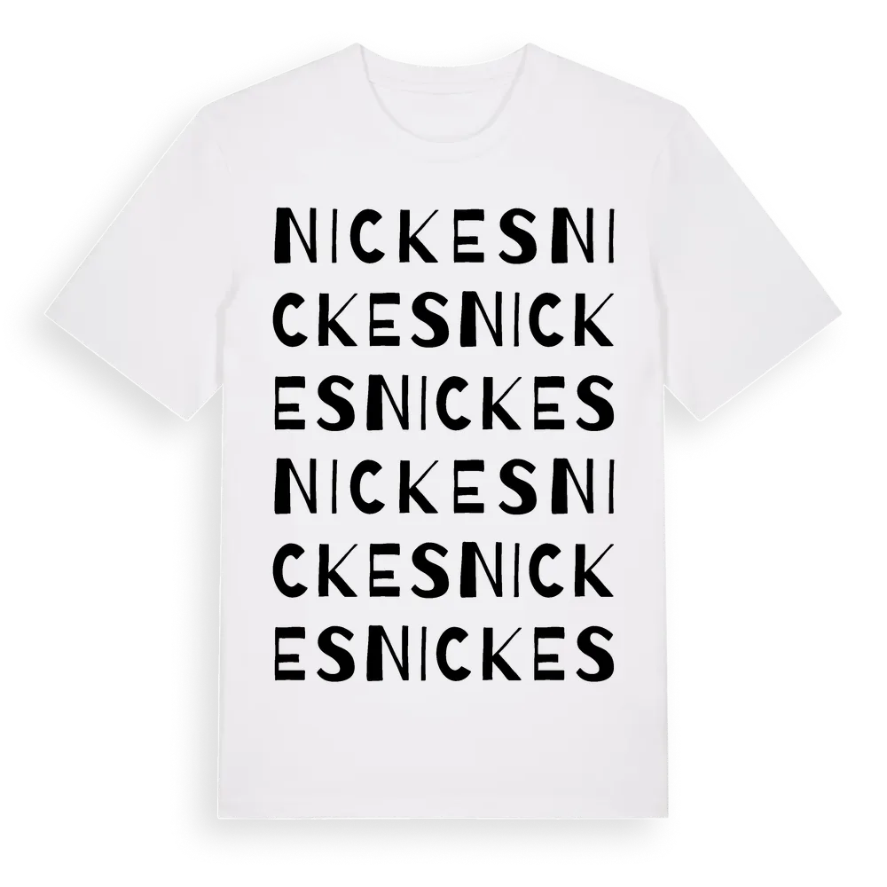 Nickes ordlek t-shirt är inspirerad av Nickes i Gävleborgs län, Sverige. Tröjan är designad för dig som har en speciell koppling till platsen – oavsett om du bor här, har rötterna här eller bara älskar Nickes.