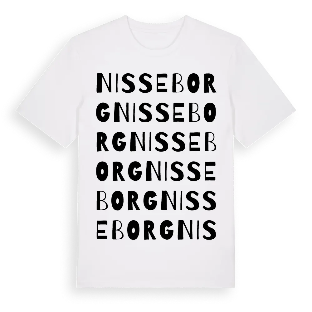 Nisseborg ordlek t-shirt är inspirerad av Nisseborg i Gävleborgs län, Sverige. Tröjan är designad för dig som har en speciell koppling till platsen – oavsett om du bor här, har rötterna här eller bara älskar Nisseborg.