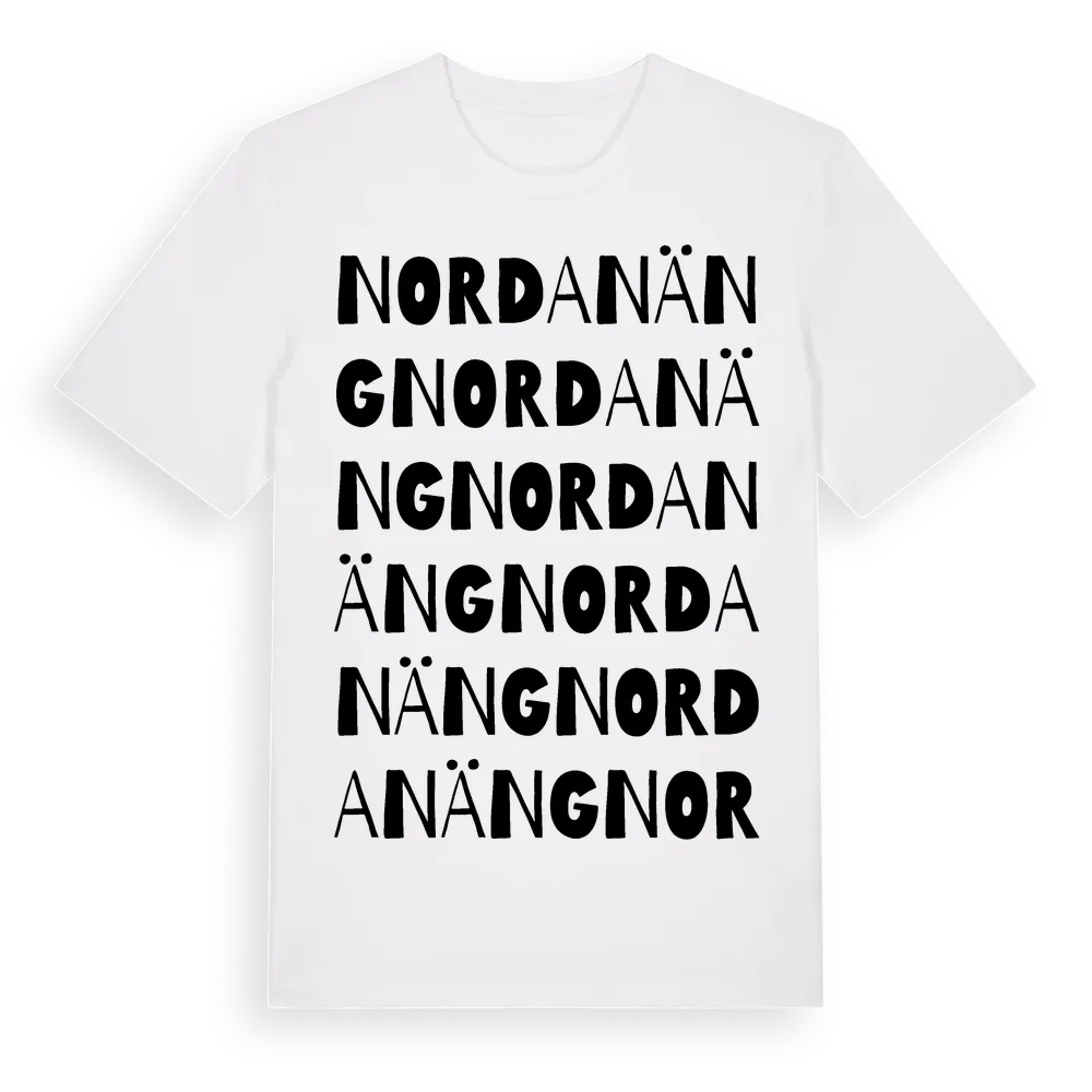 Nordanäng ordlek t-shirt är inspirerad av Nordanäng i Gävleborgs län, Sverige. Tröjan är designad för dig som har en speciell koppling till platsen – oavsett om du bor här, har rötterna här eller bara älskar Nordanäng.