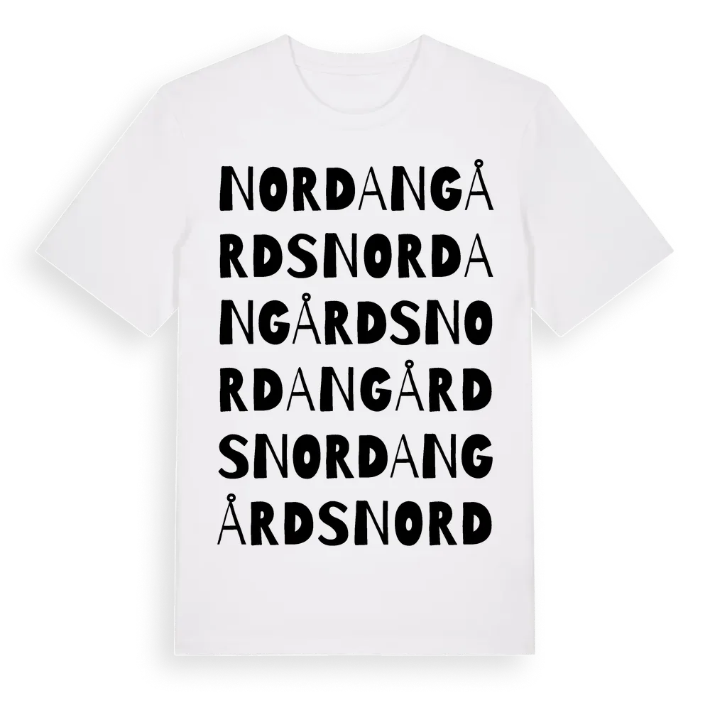 Nordangårds ordlek t-shirt är inspirerad av stadsdelen Nordangårds i Gävleborgs län, Sverige. Tröjan är designad för dig som har en speciell koppling till platsen – oavsett om du bor här, har rötterna här eller bara älskar Nordangårds.