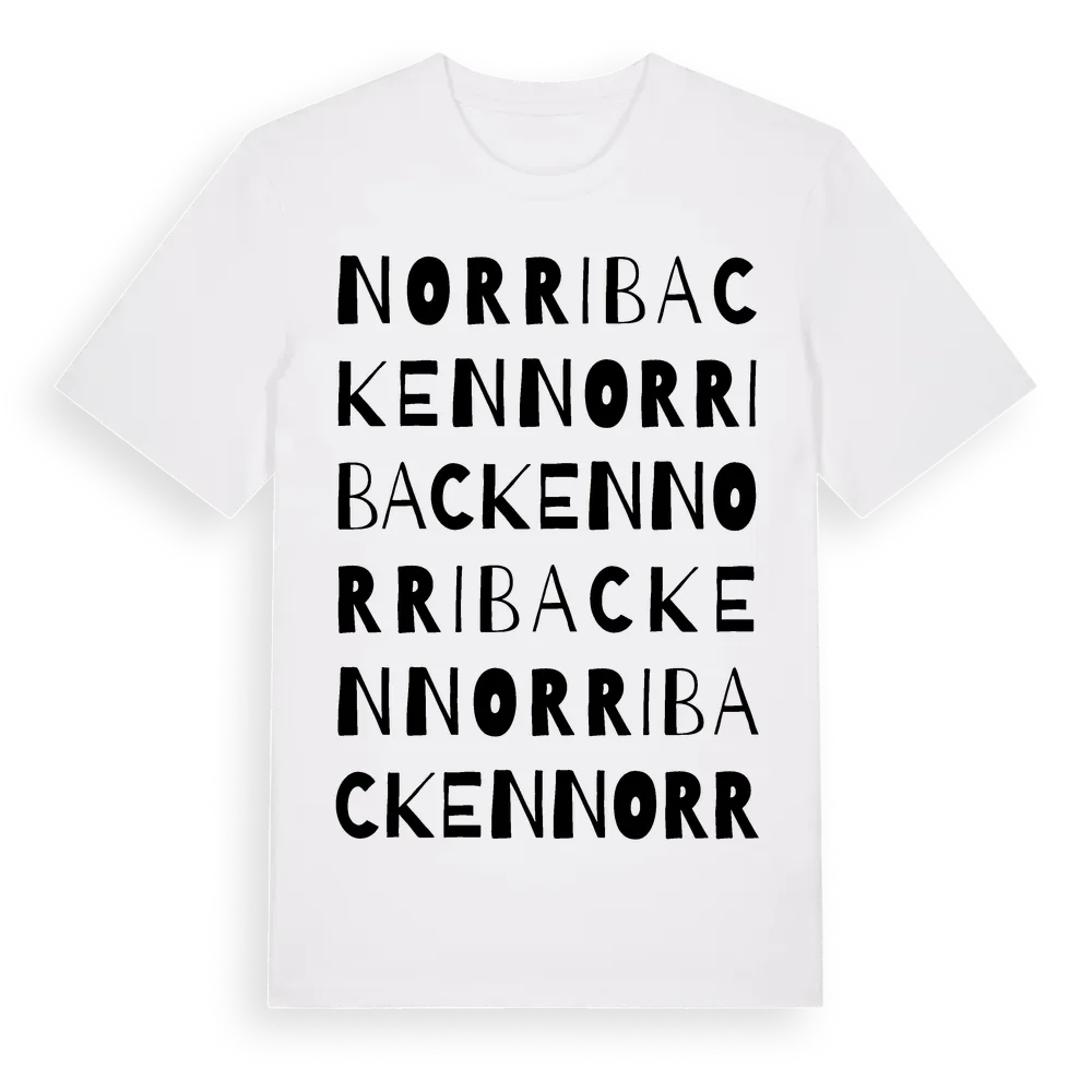 Norr I Backen ordlek t-shirt är inspirerad av Norr I Backen i Gävleborgs län, Sverige. Tröjan är designad för dig som har en speciell koppling till platsen – oavsett om du bor här, har rötterna här eller bara älskar Norr I Backen.
