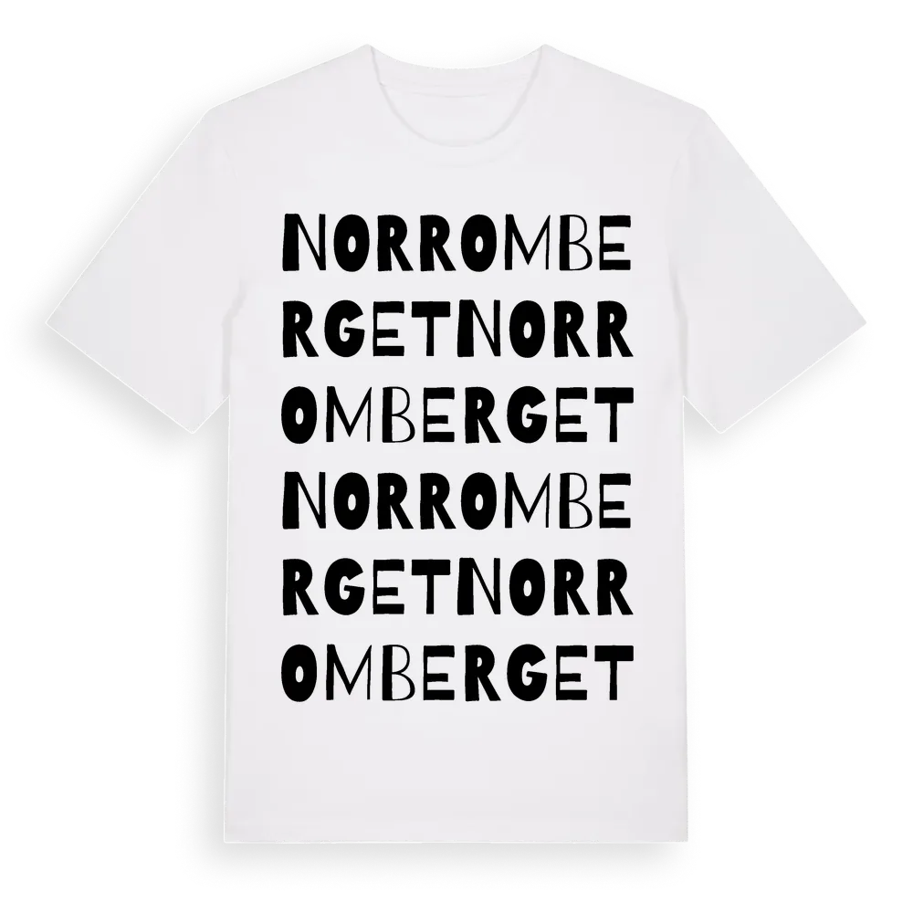 Norr Om Berget ordlek t-shirt är inspirerad av Norr Om Berget i Gävleborgs län, Sverige. Tröjan är designad för dig som har en speciell koppling till platsen – oavsett om du bor här, har rötterna här eller bara älskar Norr Om Berget.