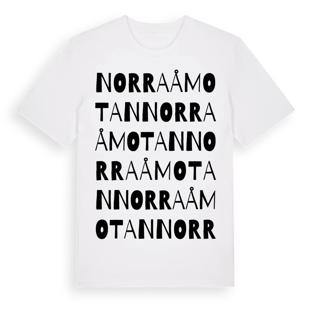 Norra Åmotan ordlek t-shirt är inspirerad av byn Norra Åmotan i Gävleborgs län, Sverige. Tröjan är designad för dig som har en speciell koppling till platsen – oavsett om du bor här, har rötterna här eller bara älskar Norra Åmotan.