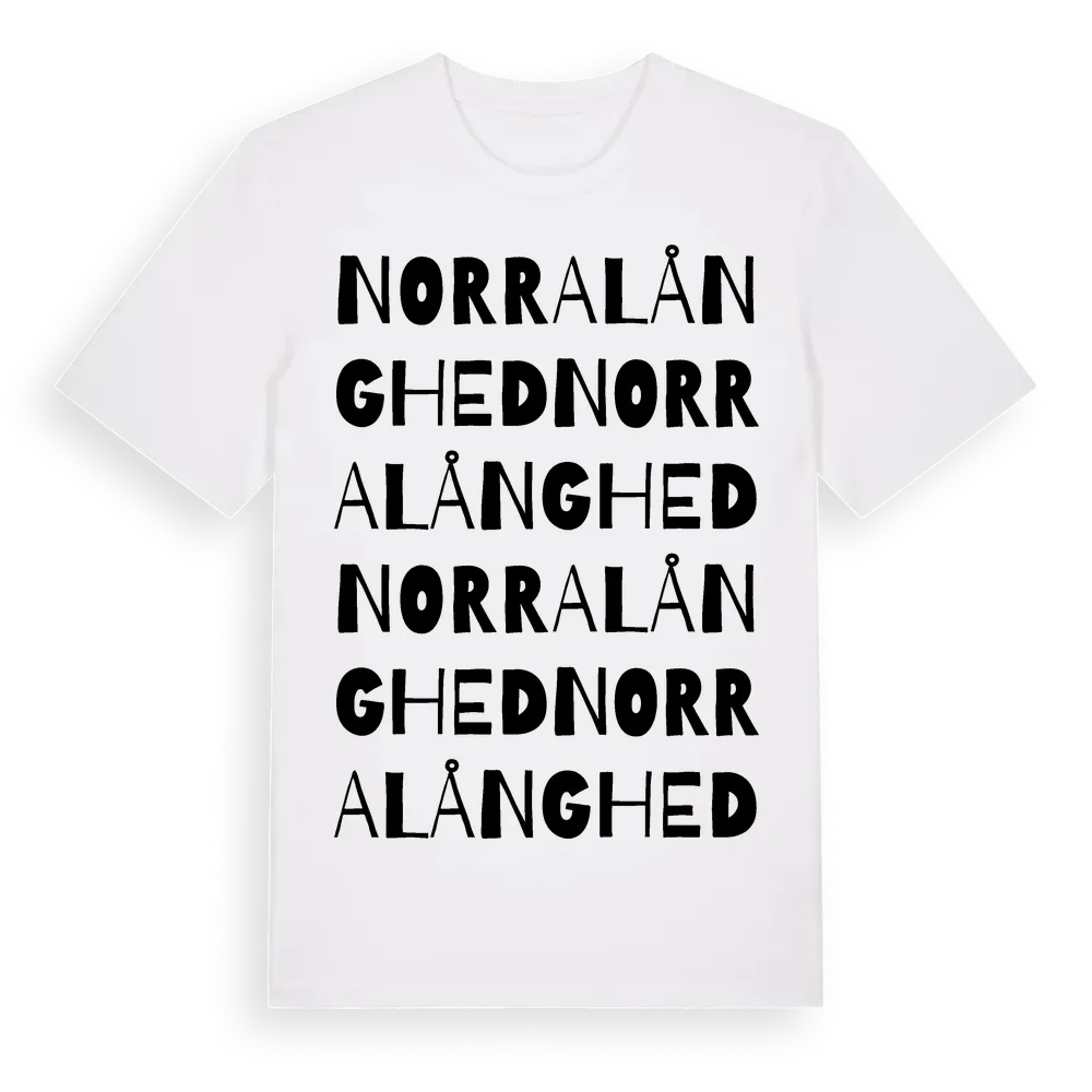 Norra Långhed ordlek t-shirt är inspirerad av byn Norra Långhed i Gävleborgs län, Sverige. Tröjan är designad för dig som har en speciell koppling till platsen – oavsett om du bor här, har rötterna här eller bara älskar Norra Långhed.