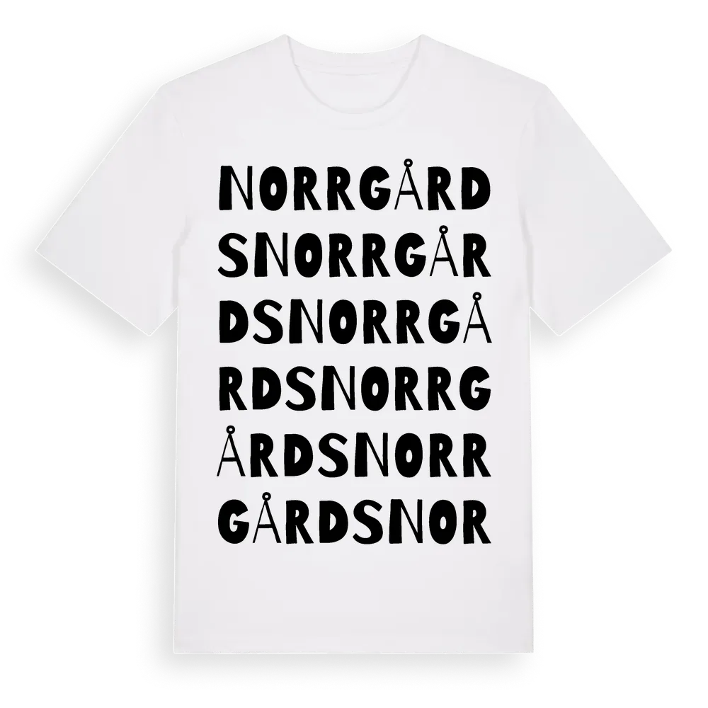 Norrgårds ordlek t-shirt är inspirerad av Norrgårds i Gävleborgs län, Sverige. Tröjan är designad för dig som har en speciell koppling till platsen – oavsett om du bor här, har rötterna här eller bara älskar Norrgårds.