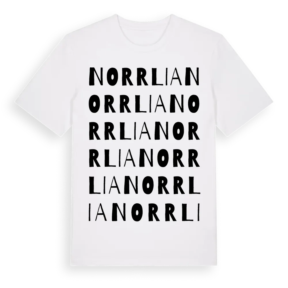 Norrlia ordlek t-shirt är inspirerad av byn Norrlia i Gävleborgs län, Sverige. Tröjan är designad för dig som har en speciell koppling till platsen – oavsett om du bor här, har rötterna här eller bara älskar Norrlia.