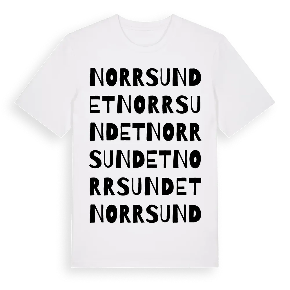 Norrsundet ordlek t-shirt är inspirerad av byn Norrsundet i Gävleborgs län, Sverige. Tröjan är designad för dig som har en speciell koppling till platsen – oavsett om du bor här, har rötterna här eller bara älskar Norrsundet.