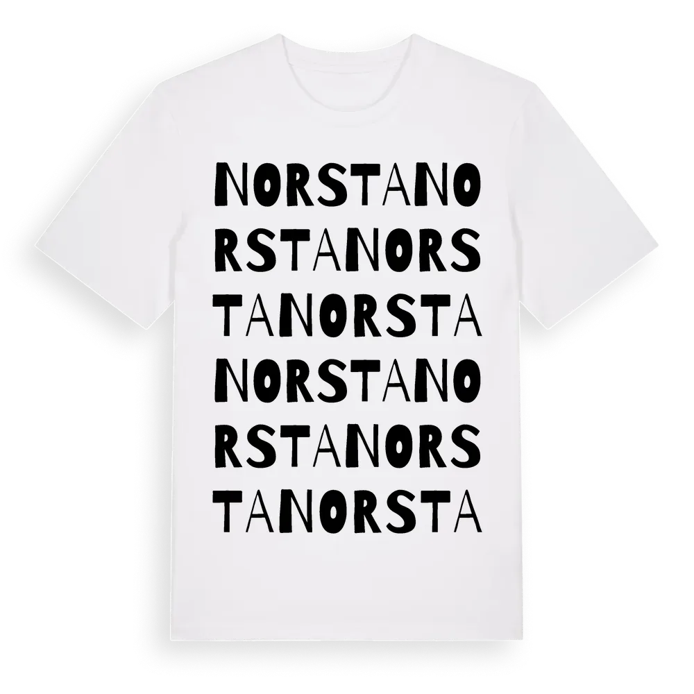 Norsta ordlek t-shirt är inspirerad av byn Norsta i Gävleborgs län, Sverige. Tröjan är designad för dig som har en speciell koppling till platsen – oavsett om du bor här, har rötterna här eller bara älskar Norsta.