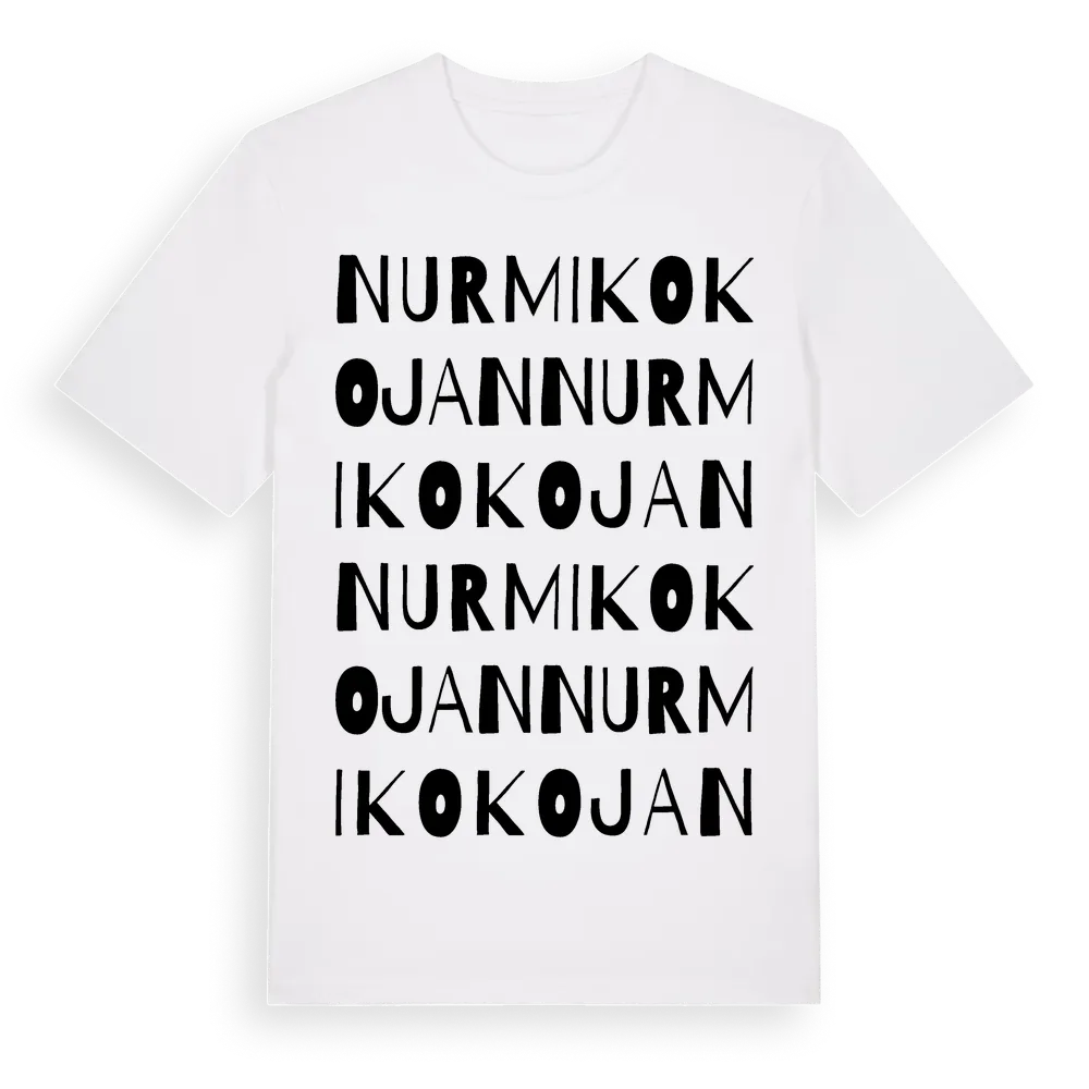 Nurmikokojan ordlek t-shirt är inspirerad av Nurmikokojan i Gävleborgs län, Sverige. Tröjan är designad för dig som har en speciell koppling till platsen – oavsett om du bor här, har rötterna här eller bara älskar Nurmikokojan.
