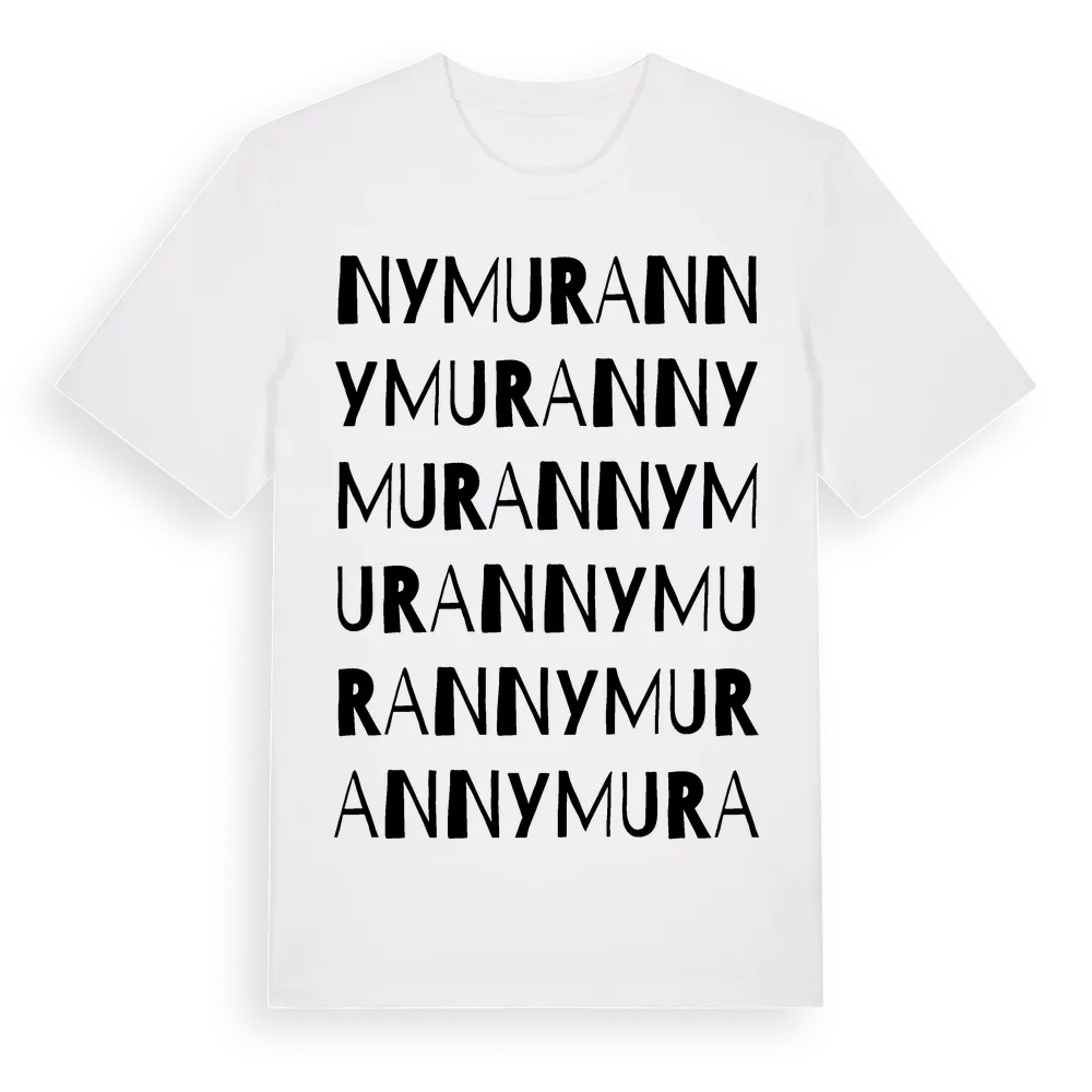 Nymuran ordlek t-shirt är inspirerad av Nymuran i Gävleborgs län, Sverige. Tröjan är designad för dig som har en speciell koppling till platsen – oavsett om du bor här, har rötterna här eller bara älskar Nymuran.