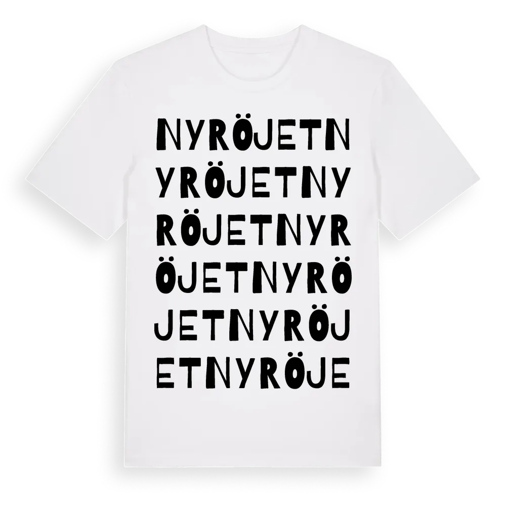 Nyröjet ordlek t-shirt är inspirerad av Nyröjet i Gävleborgs län, Sverige. Tröjan är designad för dig som har en speciell koppling till platsen – oavsett om du bor här, har rötterna här eller bara älskar Nyröjet.