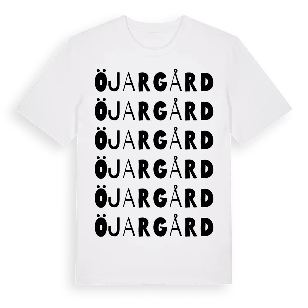 Öjargård ordlek t-shirt är inspirerad av Öjargård i Gävleborgs län, Sverige. Tröjan är designad för dig som har en speciell koppling till platsen – oavsett om du bor här, har rötterna här eller bara älskar Öjargård.
