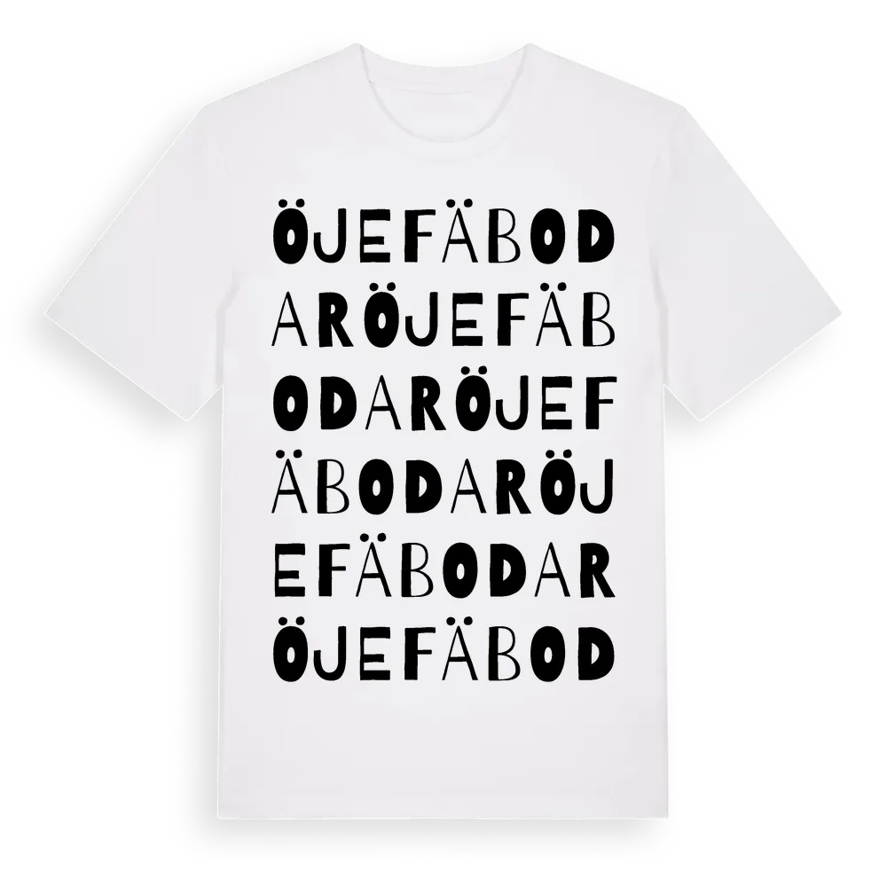 Öje Fäbodar ordlek t-shirt är inspirerad av Öje Fäbodar i Gävleborgs län, Sverige. Tröjan är designad för dig som har en speciell koppling till platsen – oavsett om du bor här, har rötterna här eller bara älskar Öje Fäbodar.