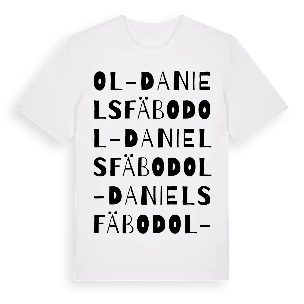 Ol-Daniels Fäbod ordlek t-shirt är inspirerad av Ol-Daniels Fäbod i Gävleborgs län, Sverige. Tröjan är designad för dig som har en speciell koppling till platsen – oavsett om du bor här, har rötterna här eller bara älskar Ol-Daniels Fäbod.