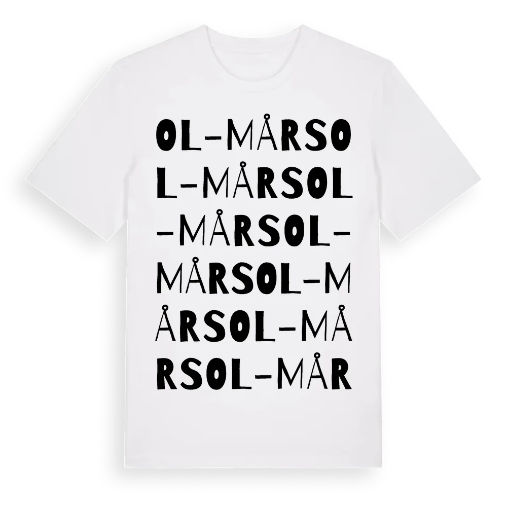Ol-Mårs ordlek t-shirt är inspirerad av Ol-Mårs i Gävleborgs län, Sverige. Tröjan är designad för dig som har en speciell koppling till platsen – oavsett om du bor här, har rötterna här eller bara älskar Ol-Mårs.