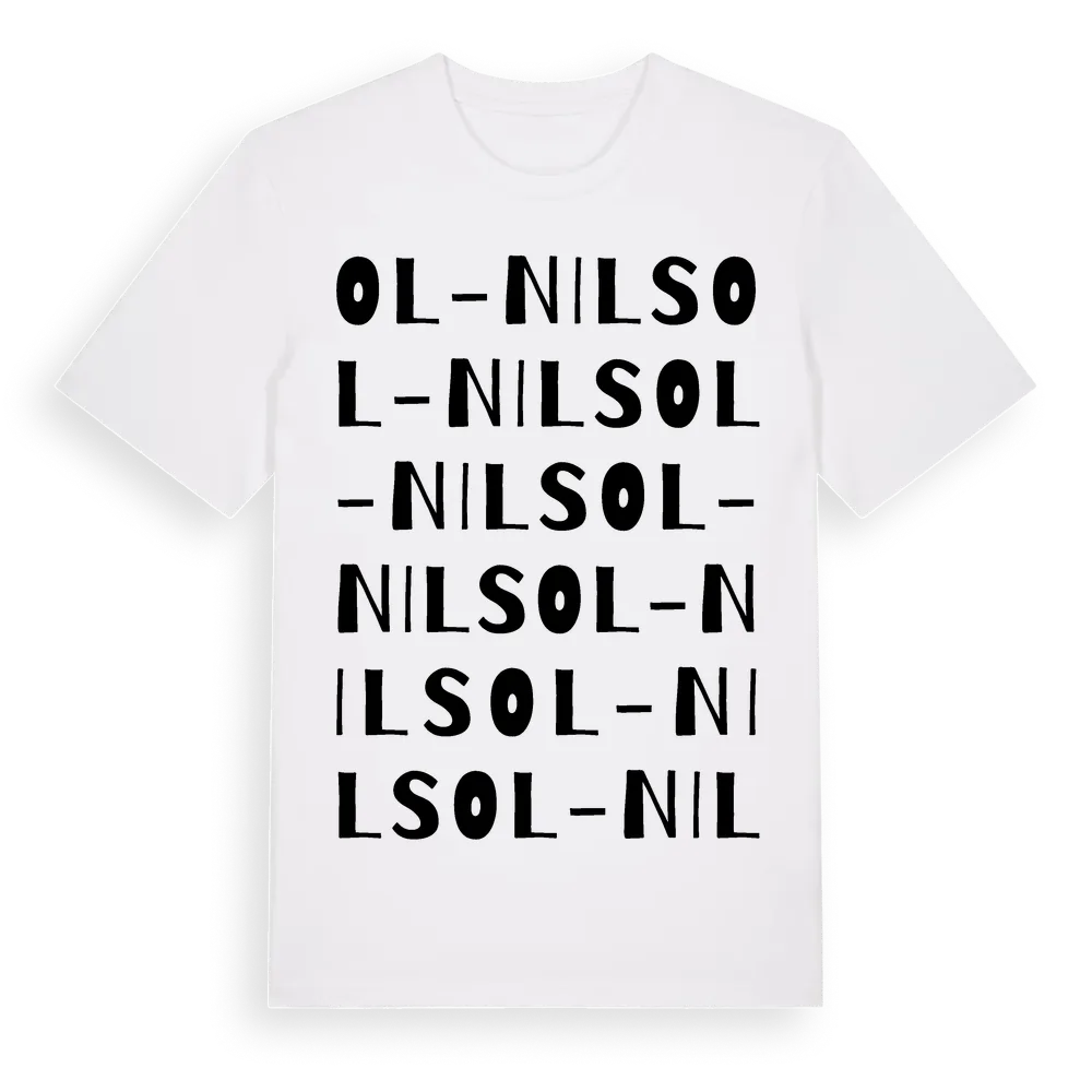 Ol-Nils ordlek t-shirt är inspirerad av Ol-Nils i Gävleborgs län, Sverige. Tröjan är designad för dig som har en speciell koppling till platsen – oavsett om du bor här, har rötterna här eller bara älskar Ol-Nils.
