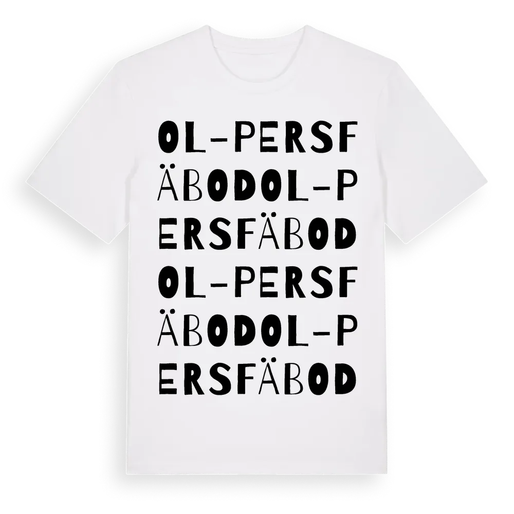 Ol-Pers Fäbod ordlek t-shirt är inspirerad av Ol-Pers Fäbod i Gävleborgs län, Sverige. Tröjan är designad för dig som har en speciell koppling till platsen – oavsett om du bor här, har rötterna här eller bara älskar Ol-Pers Fäbod.