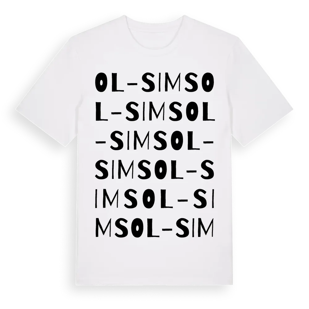 Ol-Sims ordlek t-shirt är inspirerad av Ol-Sims i Gävleborgs län, Sverige. Tröjan är designad för dig som har en speciell koppling till platsen – oavsett om du bor här, har rötterna här eller bara älskar Ol-Sims.