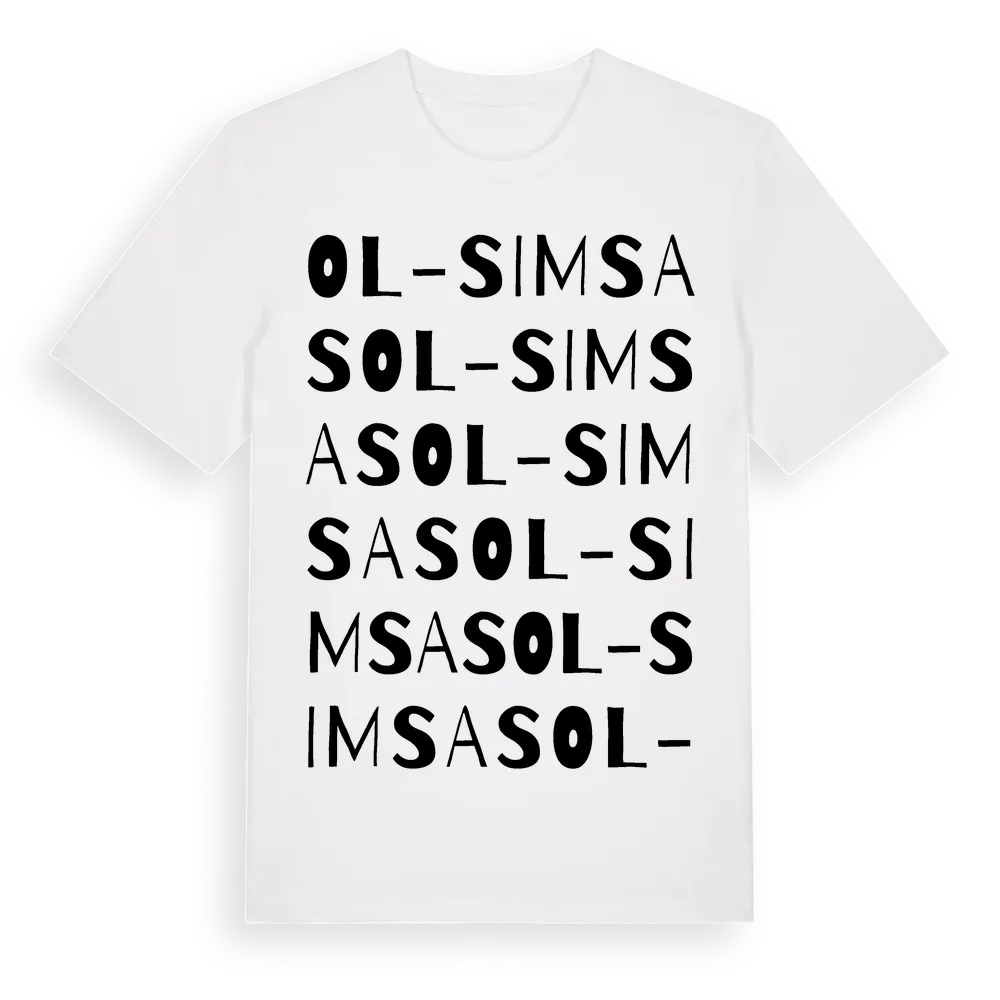 Ol-Simsas ordlek t-shirt är inspirerad av Ol-Simsas i Gävleborgs län, Sverige. Tröjan är designad för dig som har en speciell koppling till platsen – oavsett om du bor här, har rötterna här eller bara älskar Ol-Simsas.
