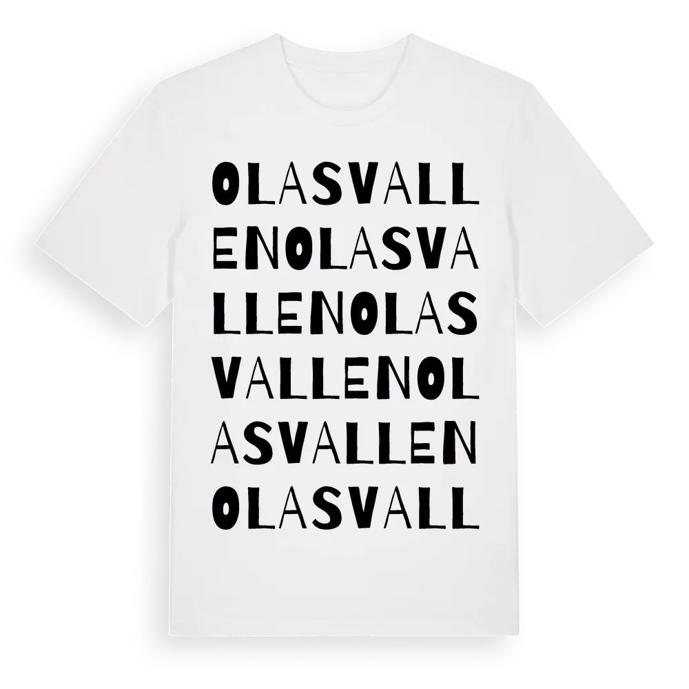 Olasvallen ordlek t-shirt är inspirerad av Olasvallen i Gävleborgs län, Sverige. Tröjan är designad för dig som har en speciell koppling till platsen – oavsett om du bor här, har rötterna här eller bara älskar Olasvallen.
