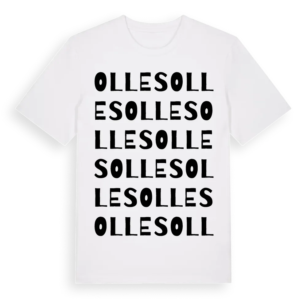 Olles ordlek t-shirt är inspirerad av Olles i Gävleborgs län, Sverige. Tröjan är designad för dig som har en speciell koppling till platsen – oavsett om du bor här, har rötterna här eller bara älskar Olles.