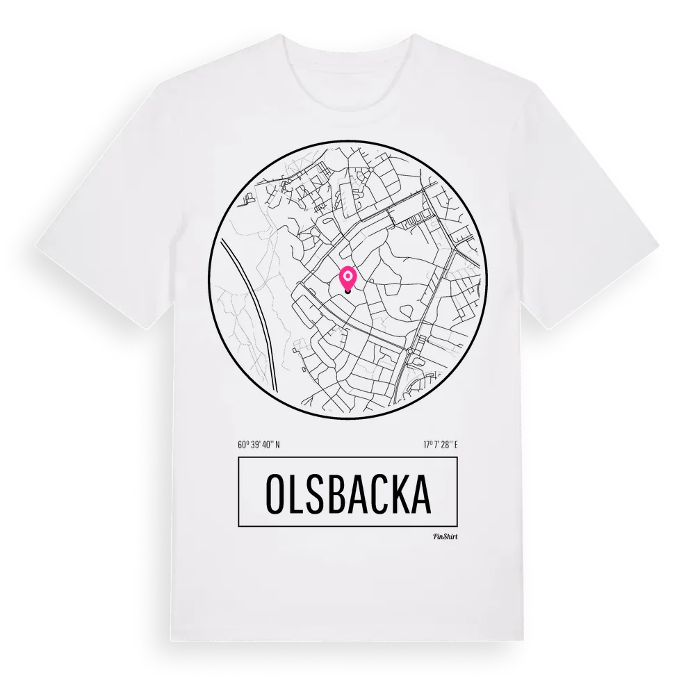 Olsbacka t-shirt är inspirerad av stadsdelen Olsbacka i Gävleborgs län, Sverige. Tröjan är designad för dig som har en speciell koppling till platsen – oavsett om du bor här, har rötterna här eller bara älskar Olsbacka.