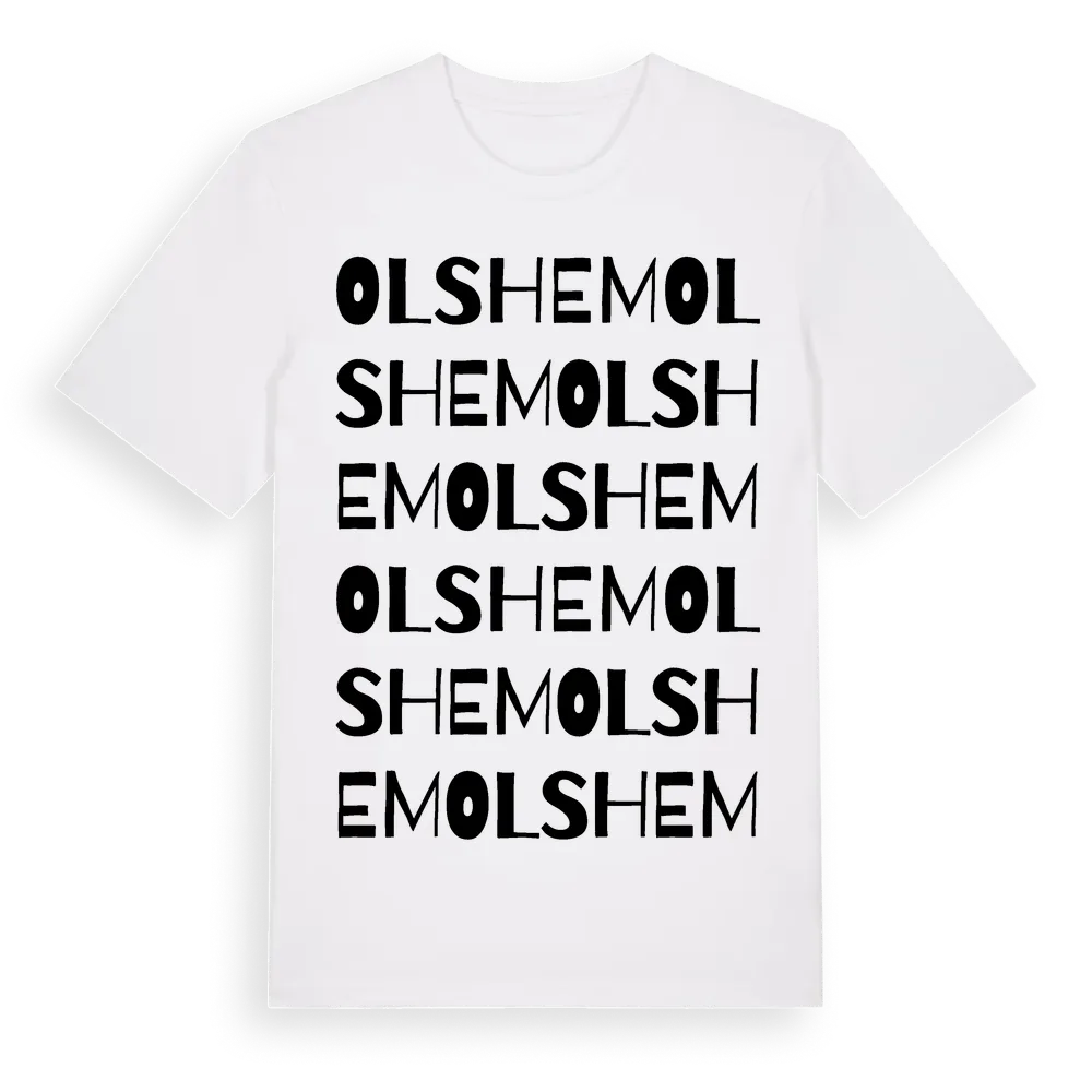 Olshem ordlek t-shirt är inspirerad av Olshem i Gävleborgs län, Sverige. Tröjan är designad för dig som har en speciell koppling till platsen – oavsett om du bor här, har rötterna här eller bara älskar Olshem.