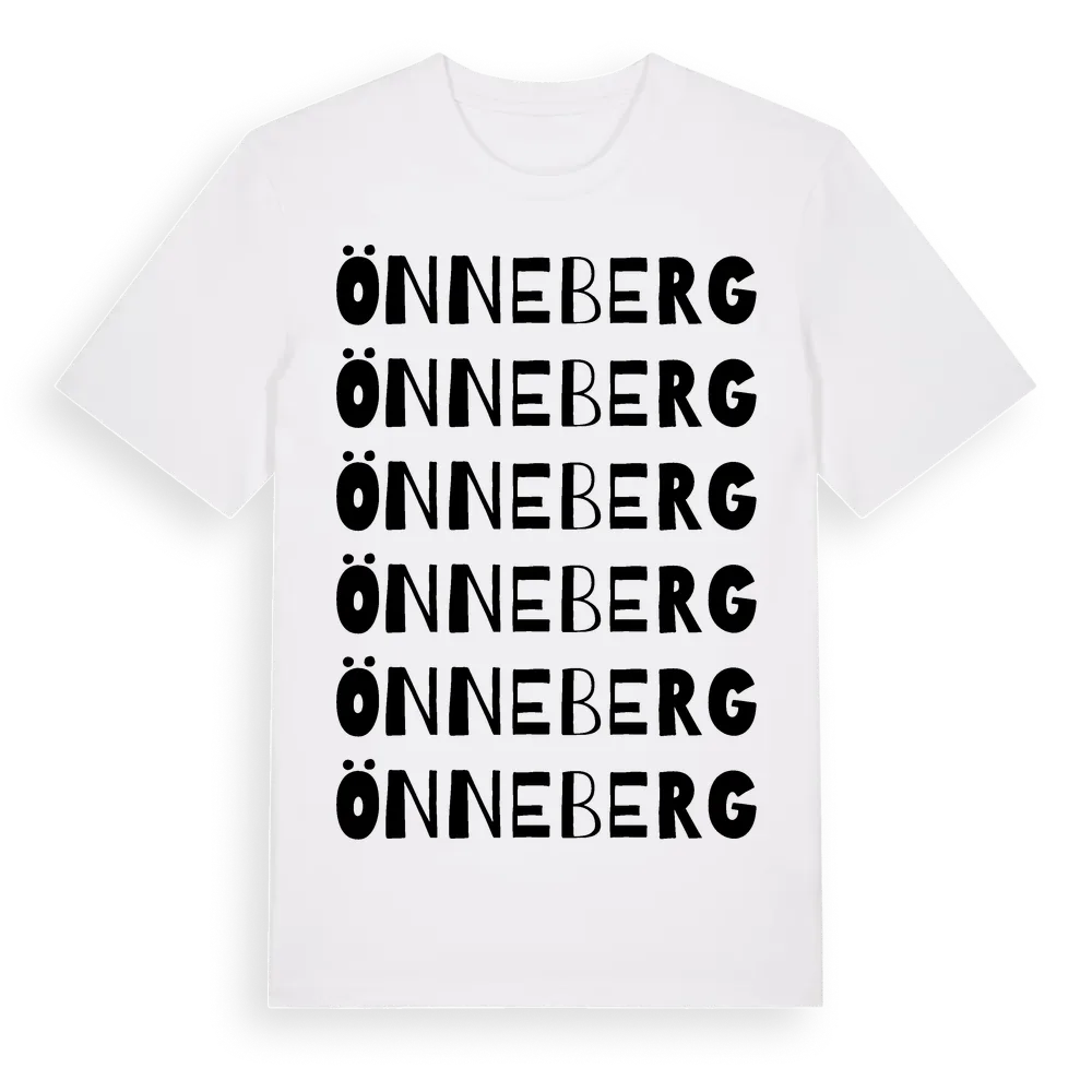 Önneberg ordlek t-shirt är inspirerad av byn Önneberg i Gävleborgs län, Sverige. Tröjan är designad för dig som har en speciell koppling till platsen – oavsett om du bor här, har rötterna här eller bara älskar Önneberg.