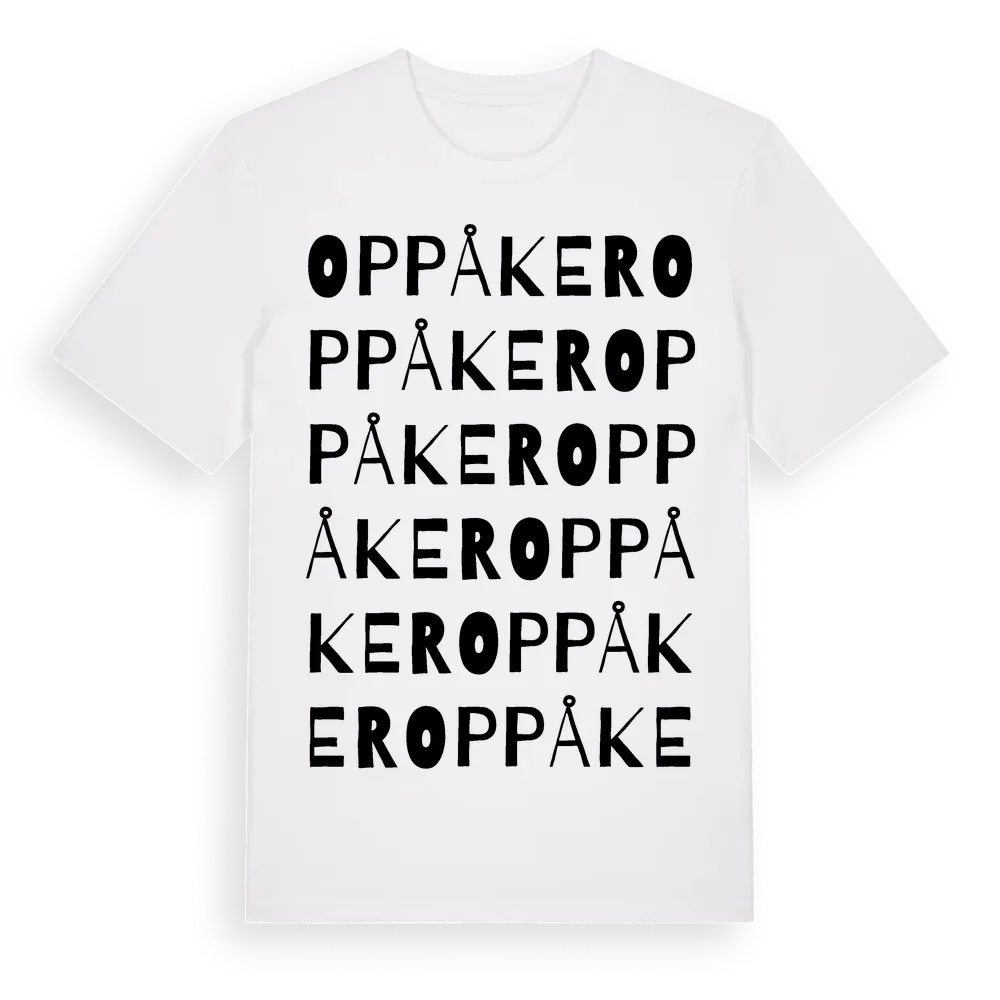 Oppåker ordlek t-shirt är inspirerad av byn Oppåker i Gävleborgs län, Sverige. Tröjan är designad för dig som har en speciell koppling till platsen – oavsett om du bor här, har rötterna här eller bara älskar Oppåker.