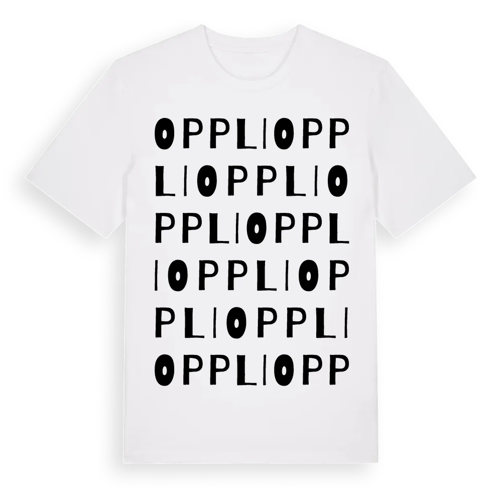 Oppli ordlek t-shirt är inspirerad av stadsdelen Oppli i Gävleborgs län, Sverige. Tröjan är designad för dig som har en speciell koppling till platsen – oavsett om du bor här, har rötterna här eller bara älskar Oppli.