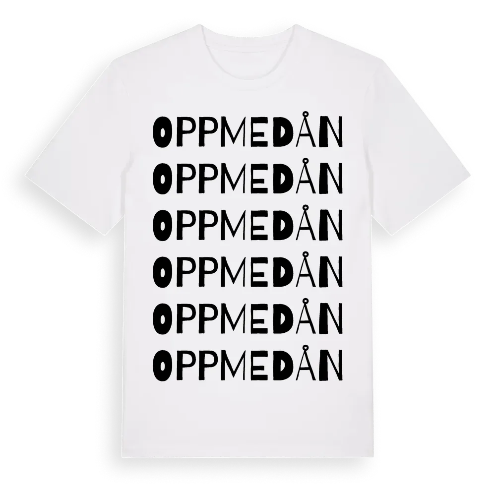Oppmedån ordlek t-shirt är inspirerad av Oppmedån i Gävleborgs län, Sverige. Tröjan är designad för dig som har en speciell koppling till platsen – oavsett om du bor här, har rötterna här eller bara älskar Oppmedån.