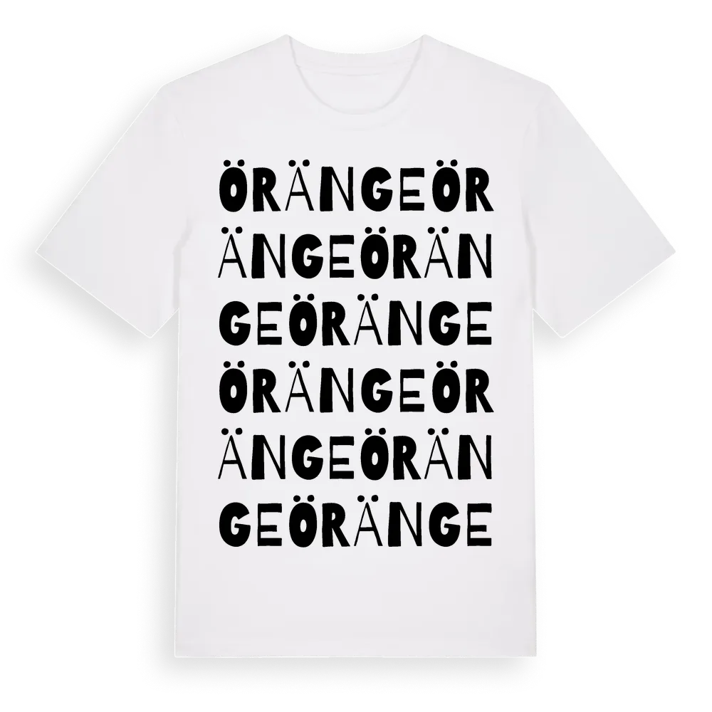 En ordlek byggd på Öränges namn. Subtilt och klurig – ett motiv som bara de som verkligen känner platsen fullt ut förstår. Premium bomull, unisex – från byn Öränge i Gävleborgs län.