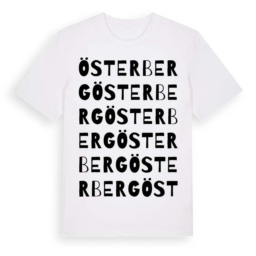 Österberg ordlek t-shirt är inspirerad av stadsdelen Österberg i Gävleborgs län, Sverige. Tröjan är designad för dig som har en speciell koppling till platsen – oavsett om du bor här, har rötterna här eller bara älskar Österberg.