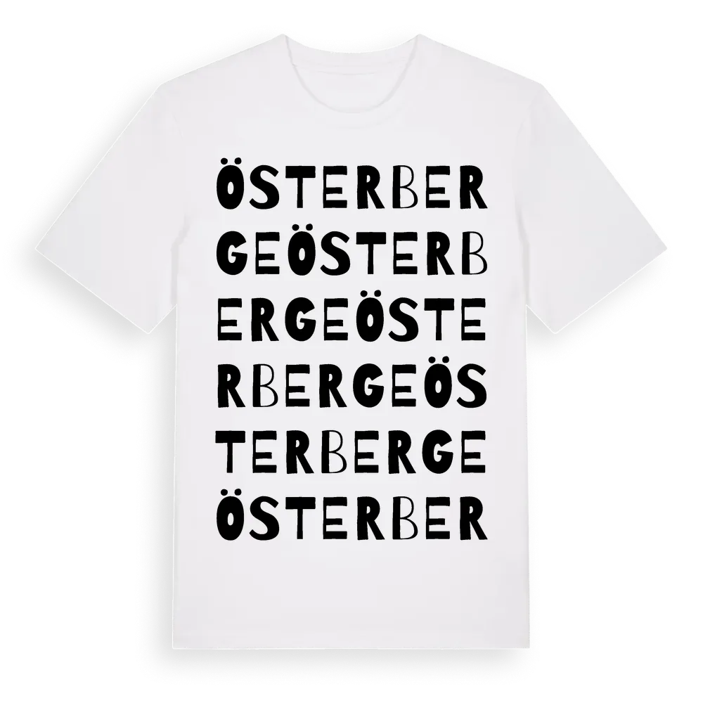 Österberge ordlek t-shirt är inspirerad av Österberge i Gävleborgs län, Sverige. Tröjan är designad för dig som har en speciell koppling till platsen – oavsett om du bor här, har rötterna här eller bara älskar Österberge.