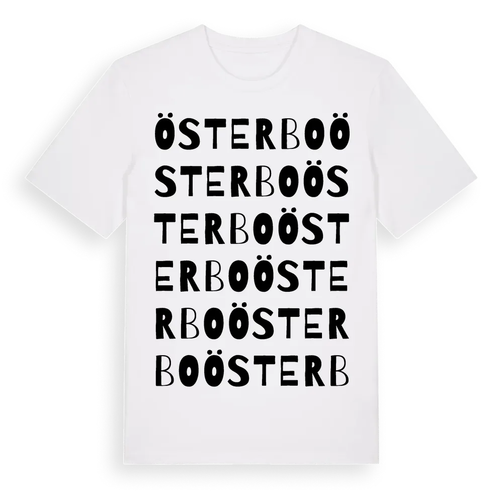 En ordlek byggd på Österbos namn. Subtilt och klurig – ett motiv som bara de som verkligen känner platsen fullt ut förstår. Premium bomull, unisex – från Österbo i Gävleborgs län.