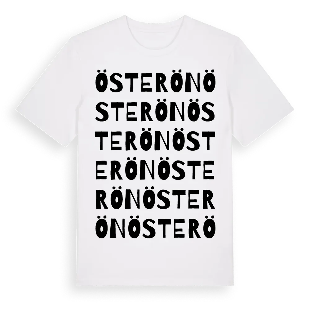 En ordlek byggd på Österöns namn. Subtilt och klurig – ett motiv som bara de som verkligen känner platsen fullt ut förstår. Premium bomull, unisex – från ön Österön i Gävleborgs län.