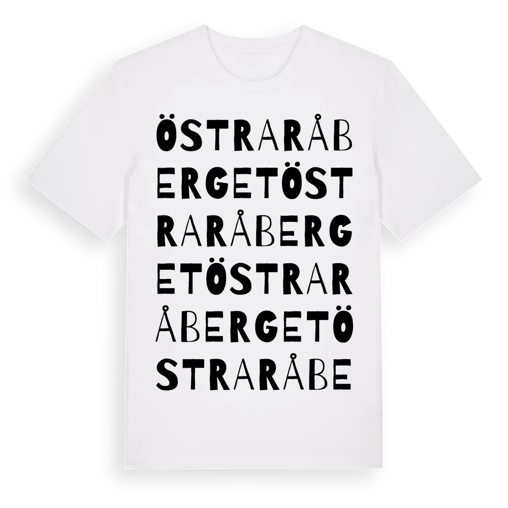 Östra Råberget ordlek t-shirt är inspirerad av Östra Råberget i Gävleborgs län, Sverige. Tröjan är designad för dig som har en speciell koppling till platsen – oavsett om du bor här, har rötterna här eller bara älskar Östra Råberget.