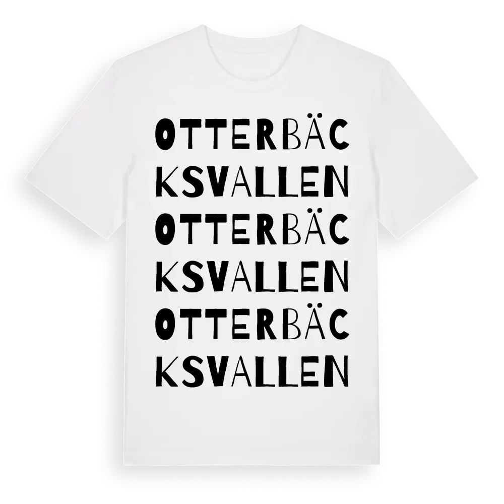 Otterbäcksvallen ordlek t-shirt är inspirerad av byn Otterbäcksvallen i Gävleborgs län, Sverige. Tröjan är designad för dig som har en speciell koppling till platsen – oavsett om du bor här, har rötterna här eller bara älskar Otterbäcksvallen.