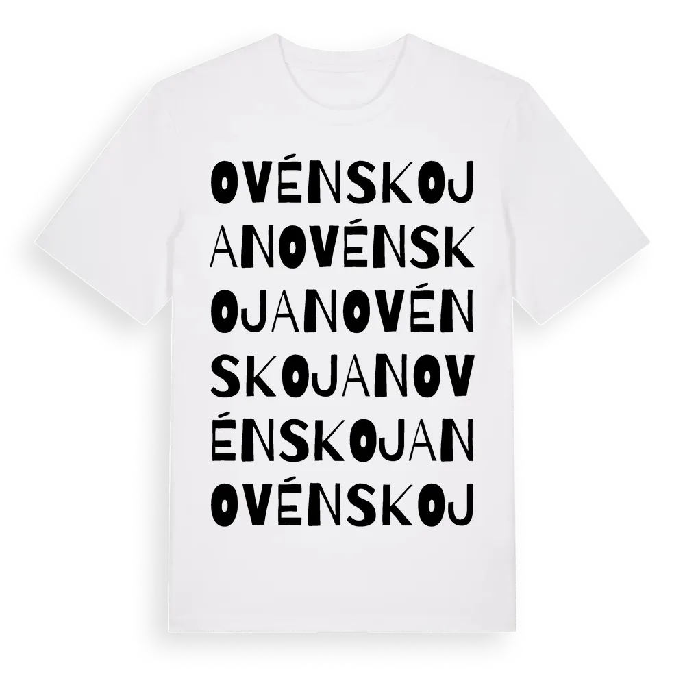 Ovénskojan ordlek t-shirt är inspirerad av Ovénskojan i Gävleborgs län, Sverige. Tröjan är designad för dig som har en speciell koppling till platsen – oavsett om du bor här, har rötterna här eller bara älskar Ovénskojan.
