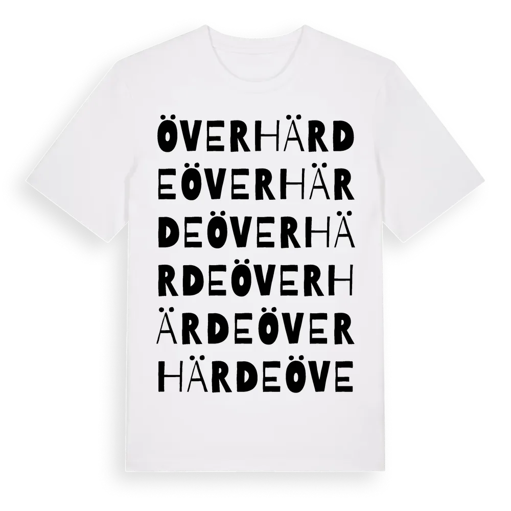 Överhärde ordlek t-shirt är inspirerad av byn Överhärde i Gävleborgs län, Sverige. Tröjan är designad för dig som har en speciell koppling till platsen – oavsett om du bor här, har rötterna här eller bara älskar Överhärde.