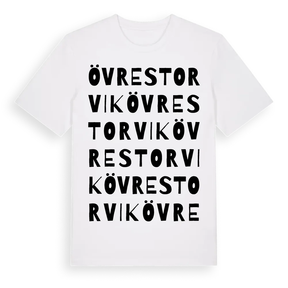 Övre Storvik ordlek t-shirt är inspirerad av byn Övre Storvik i Gävleborgs län, Sverige. Tröjan är designad för dig som har en speciell koppling till platsen – oavsett om du bor här, har rötterna här eller bara älskar Övre Storvik.
