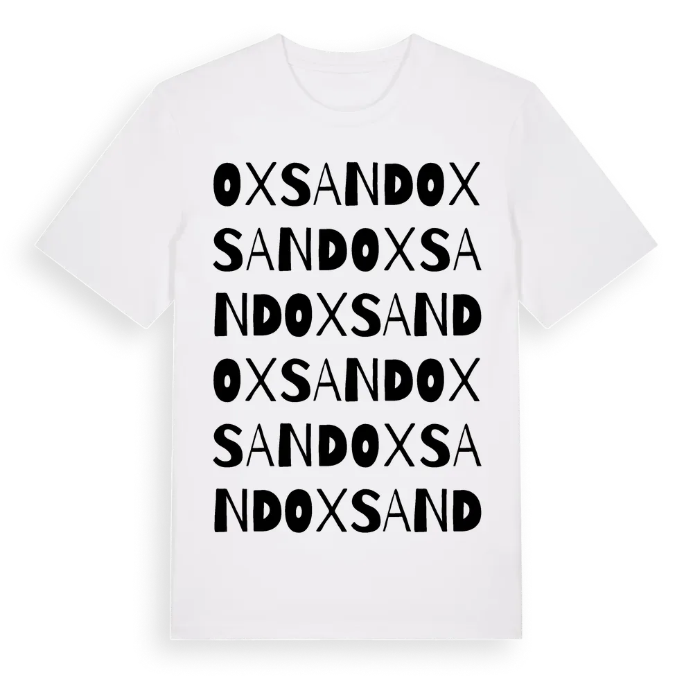 Oxsand ordlek t-shirt är inspirerad av byn Oxsand i Gävleborgs län, Sverige. Tröjan är designad för dig som har en speciell koppling till platsen – oavsett om du bor här, har rötterna här eller bara älskar Oxsand.