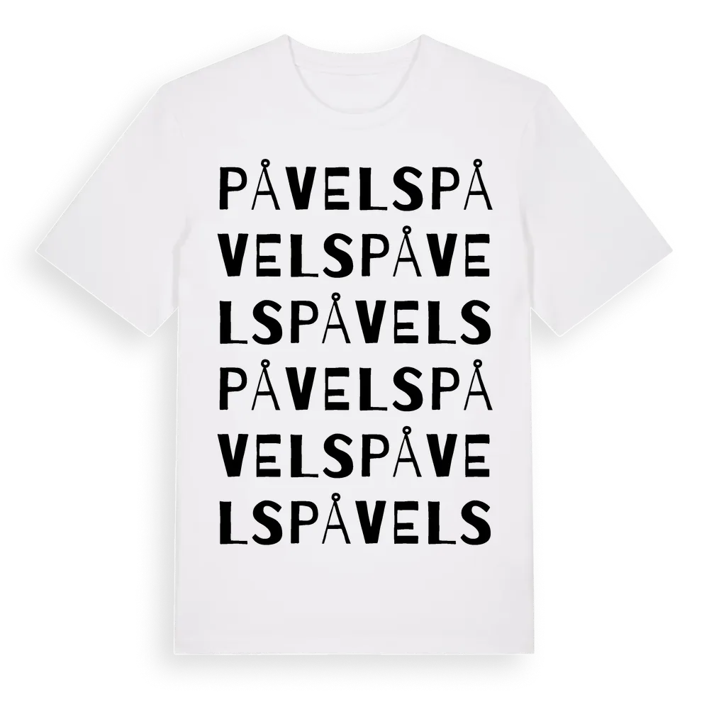 Påvels ordlek t-shirt är inspirerad av Påvels i Gävleborgs län, Sverige. Tröjan är designad för dig som har en speciell koppling till platsen – oavsett om du bor här, har rötterna här eller bara älskar Påvels.