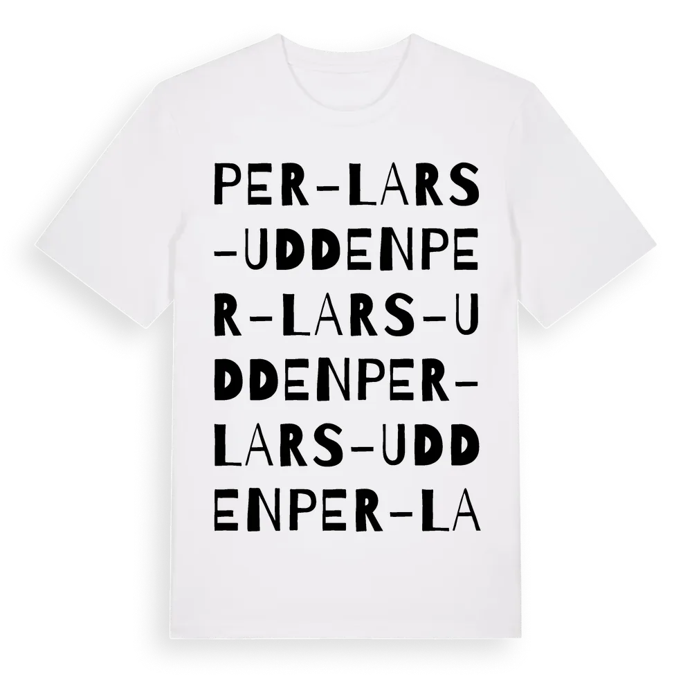 Per-Lars-Udden ordlek t-shirt är inspirerad av Per-Lars-Udden i Gävleborgs län, Sverige. Tröjan är designad för dig som har en speciell koppling till platsen – oavsett om du bor här, har rötterna här eller bara älskar Per-Lars-Udden.