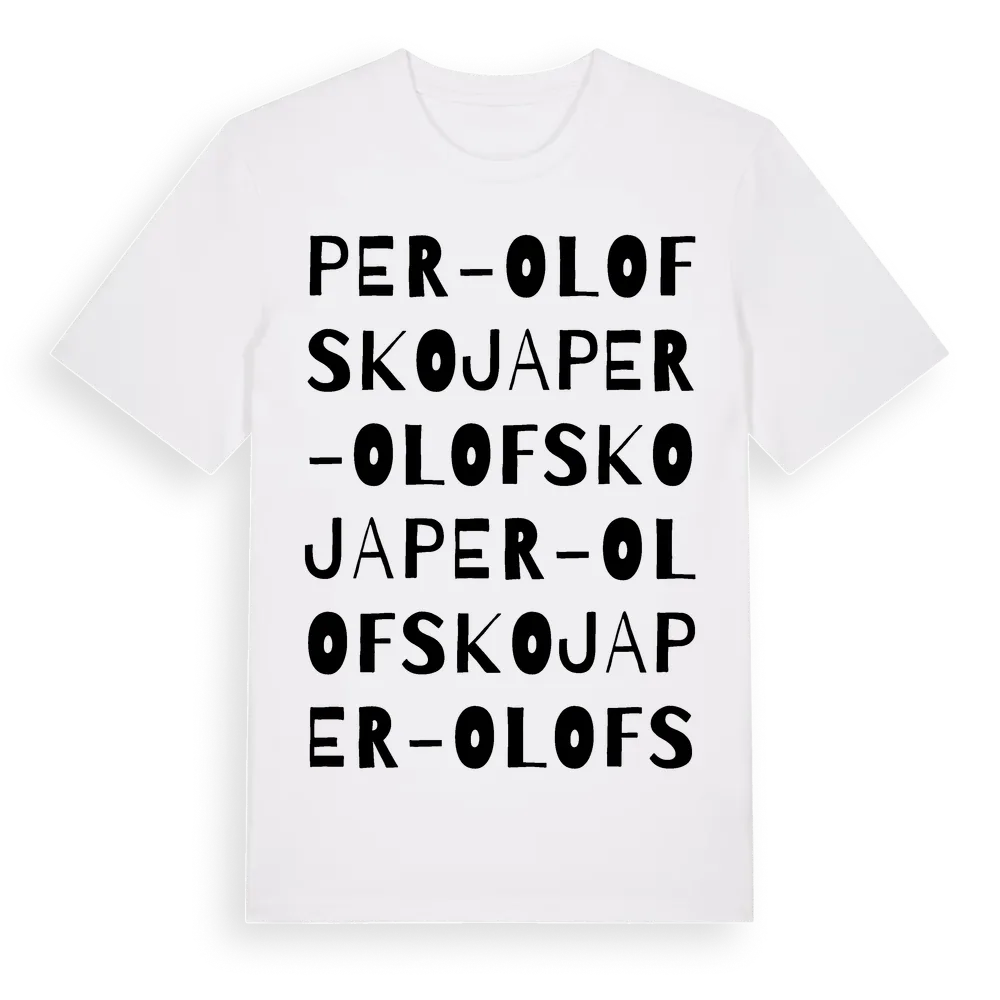Per-Olofs Koja ordlek t-shirt är inspirerad av Per-Olofs Koja i Gävleborgs län, Sverige. Tröjan är designad för dig som har en speciell koppling till platsen – oavsett om du bor här, har rötterna här eller bara älskar Per-Olofs Koja.