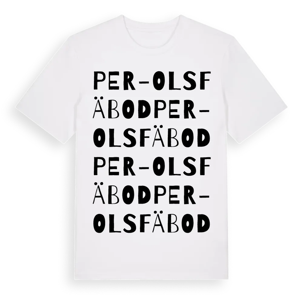 Per-Ols Fäbod ordlek t-shirt är inspirerad av Per-Ols Fäbod i Gävleborgs län, Sverige. Tröjan är designad för dig som har en speciell koppling till platsen – oavsett om du bor här, har rötterna här eller bara älskar Per-Ols Fäbod.