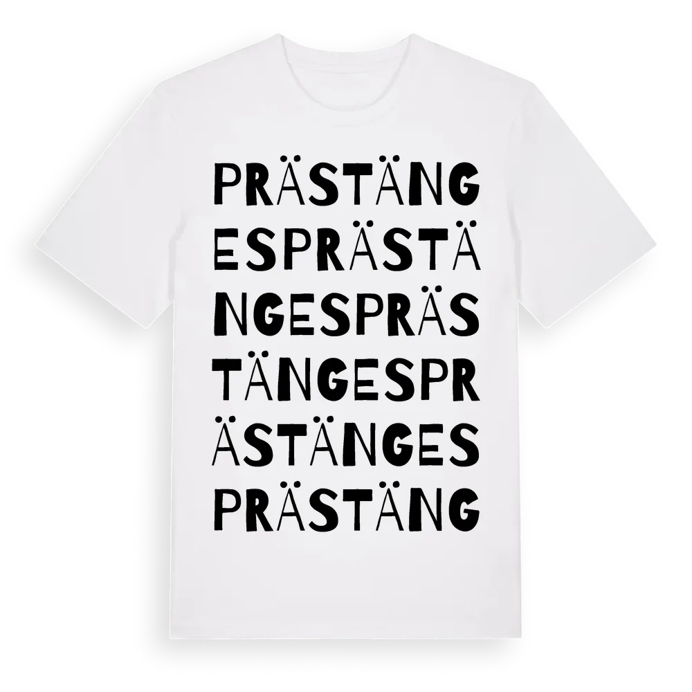 Prästänges ordlek t-shirt är inspirerad av Prästänges i Gävleborgs län, Sverige. Tröjan är designad för dig som har en speciell koppling till platsen – oavsett om du bor här, har rötterna här eller bara älskar Prästänges.
