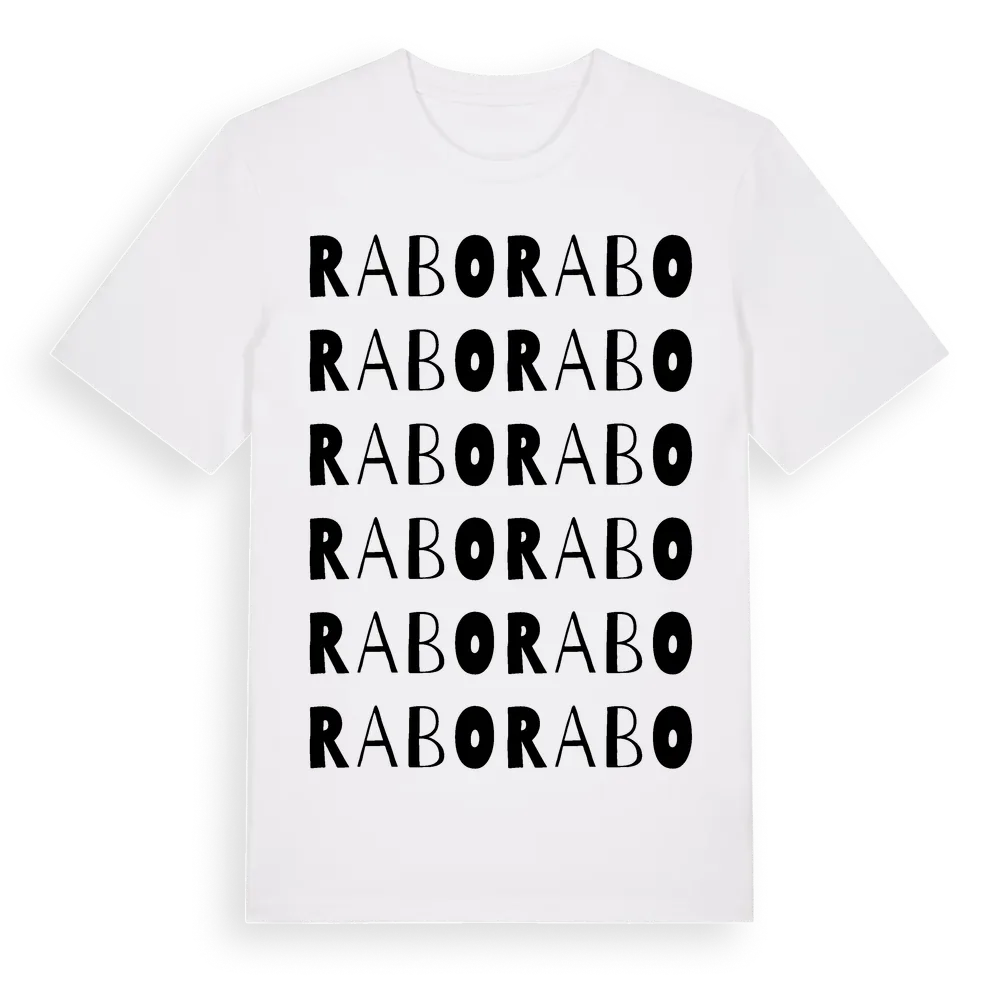 En ordlek byggd på Rabos namn. Subtilt och klurig – ett motiv som bara de som verkligen känner platsen fullt ut förstår. Premium bomull, unisex – från stadsdelen Rabo i Gävleborgs län.
