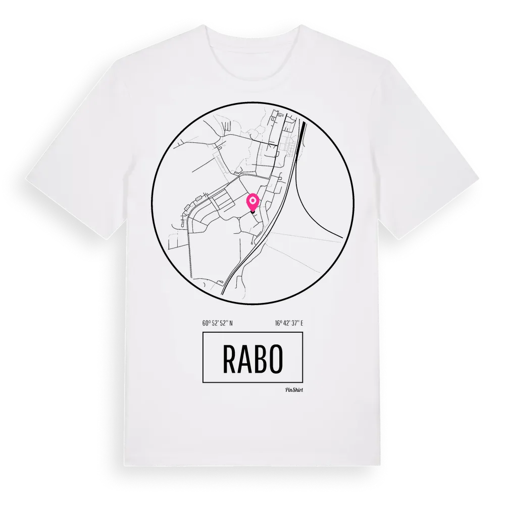 Rabo t-shirt är inspirerad av stadsdelen Rabo i Gävleborgs län, Sverige. Tröjan är designad för dig som har en speciell koppling till platsen – oavsett om du bor här, har rötterna här eller bara älskar Rabo.