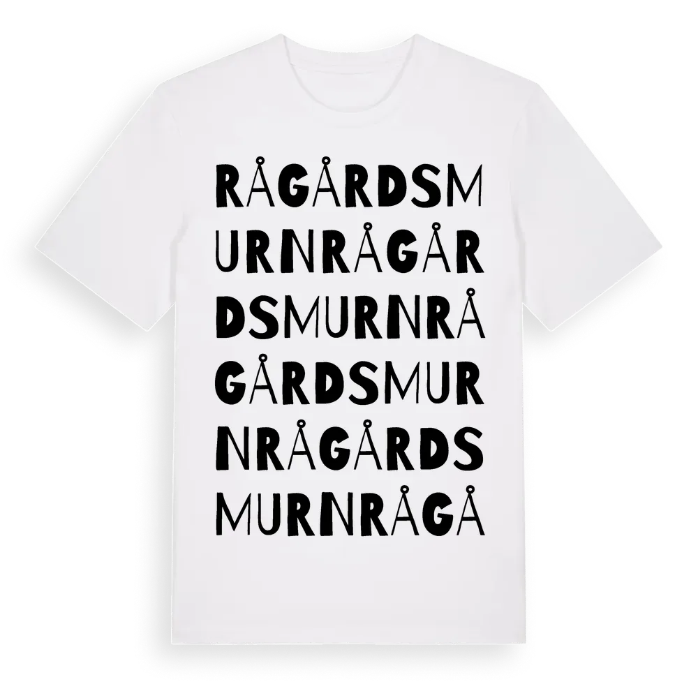 Rågårdsmurn ordlek t-shirt är inspirerad av Rågårdsmurn i Gävleborgs län, Sverige. Tröjan är designad för dig som har en speciell koppling till platsen – oavsett om du bor här, har rötterna här eller bara älskar Rågårdsmurn.